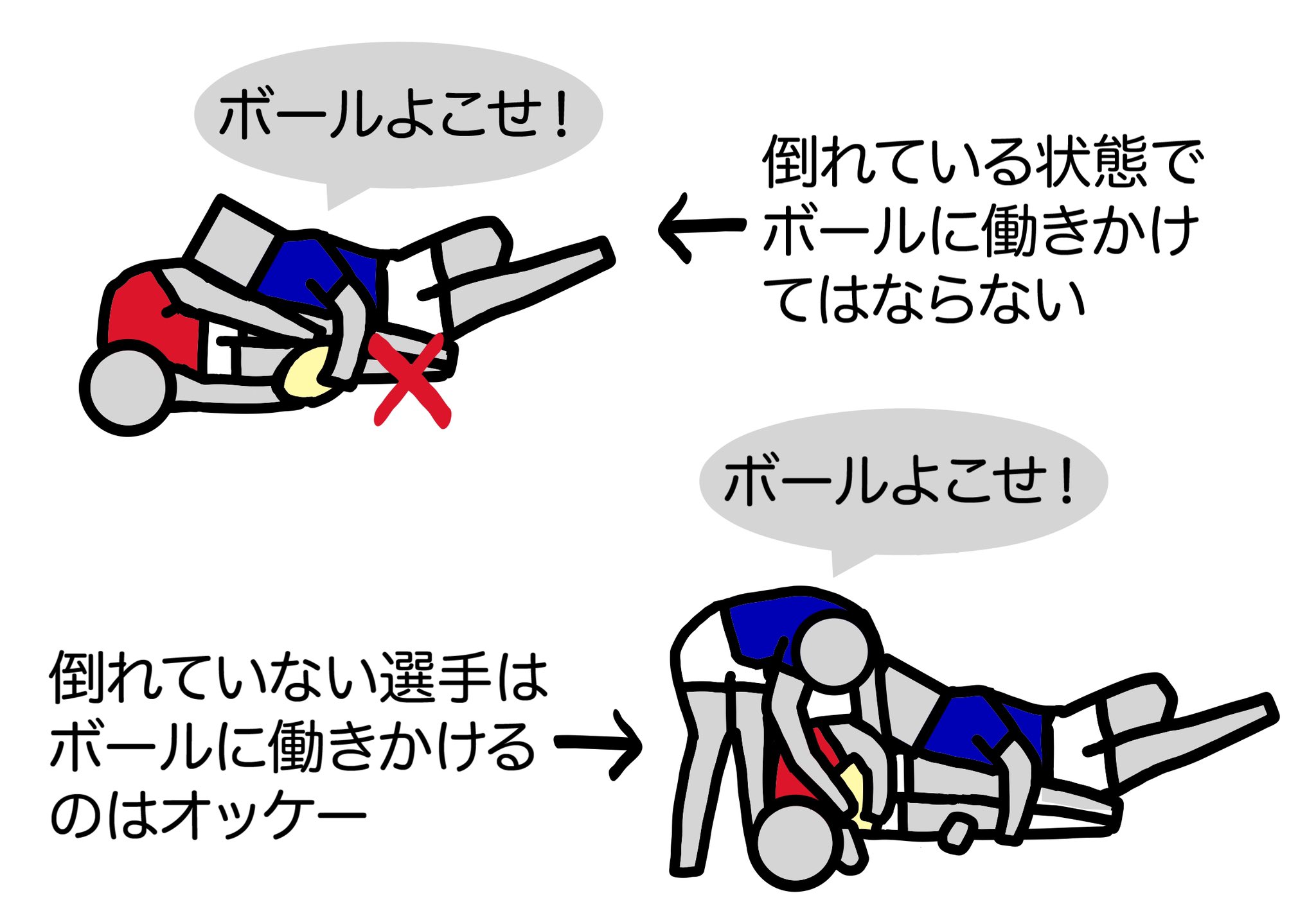 「倒れている状態」の定義と倒れた選手の禁止行為